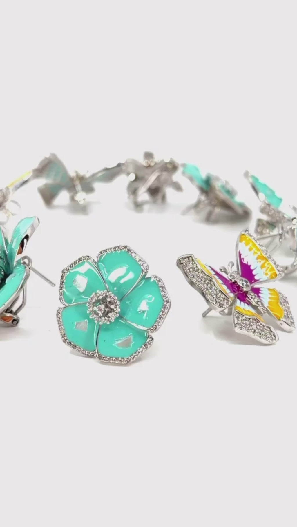 Turquoise butterfly studs with Swarovski stones in White Gold electroplated